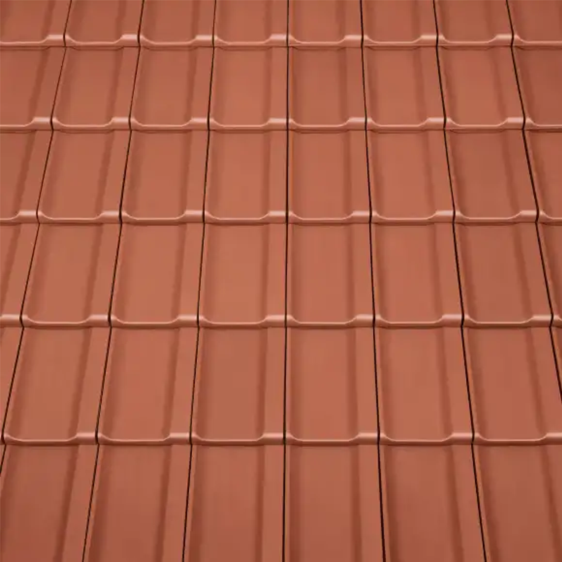 Der Topas 11V lässt Dächer in traditioneller Reformziegel-Optik erscheinen. Der breite Wasserlauf sorgt für ein harmonisches Deckbild und lässt das Dach ruhig und edel wirken. Gleichzeitig wurde die Schutzfunktion vor Wind und Regen durch eine optimierte, im Windkanal getestete Verfalzung deutlich verbessert. Der besonders große Verschiebebereich von 60 mm macht den Topas 11V zu einem Sanierungs-Spezialisten.